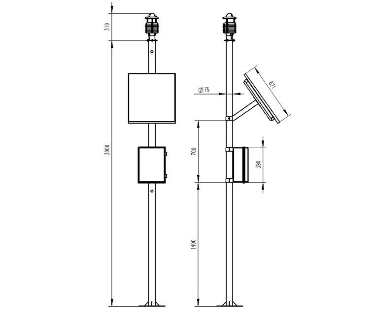 5、兩米碳鋼支架,頂部無需法蘭盤可直接套接傳感器